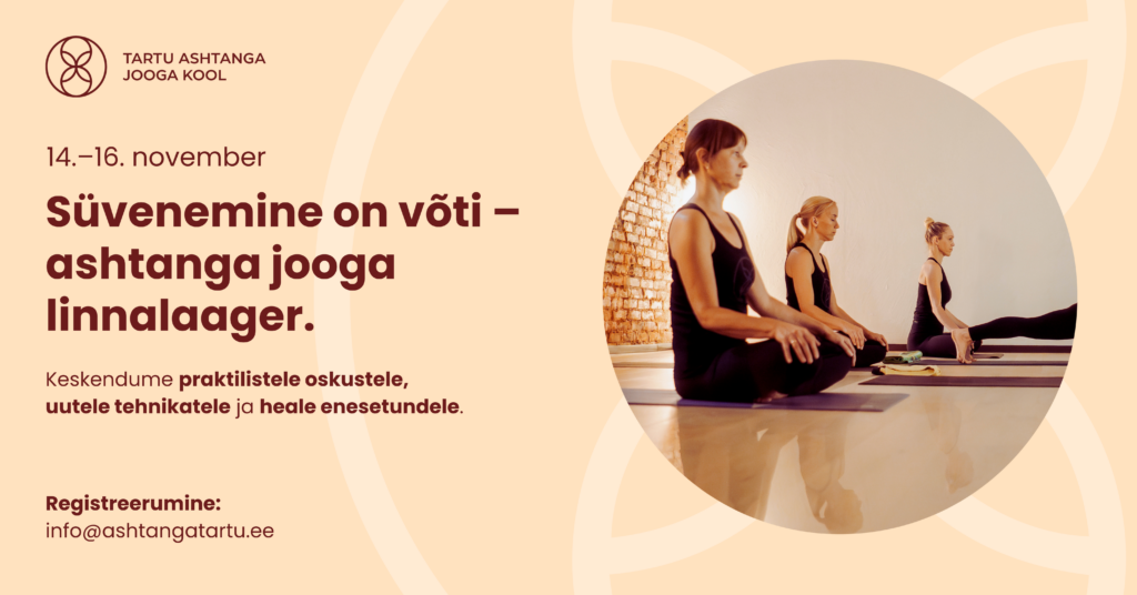Tartu Ashtanga Jooga Kooli linnalaager14.–16. november 2025 Süvenemine on võti – rahulik ja arendav jooga nädalalõpp Tartus. Laager on mõeldud meie joogakooli õpilastele, aga oodatud on ka kõik teised, kes tunnevad huvi või uudishimu ja soovi midagi uut leida või midagi endas muuta. Ootame kõiki jooga sõpru ja meie kooli õpilasi kolmepäevasesse linnalaagrisse, keskendume praktilistele oskustele, uutele tehnikatele […]