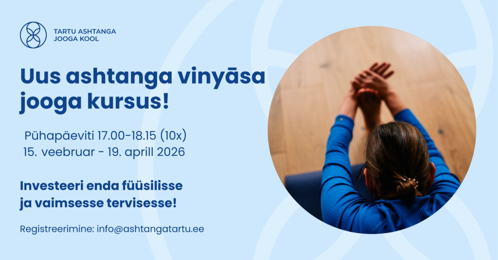 Sissejuhatav tund Pühapäev, 28. september kell 18.45–20.15 Kui sa pole päris kindel, kas ashtanga vinyāsa jooga on just sinu jaoks, siis tule ja osale kursust sissejuhatavas tunnis! Lühike tutvustus praktikasse Ashtanga vinyāsa jooga Vaatame üle kursusel käsitletavad teemad Osalemispanus: 25 €(Kui otsustad kursusega liituda, arvestatakse see summa kursuse osalustasust maha.) Algajate kursus toimub esmaspäeviti […]